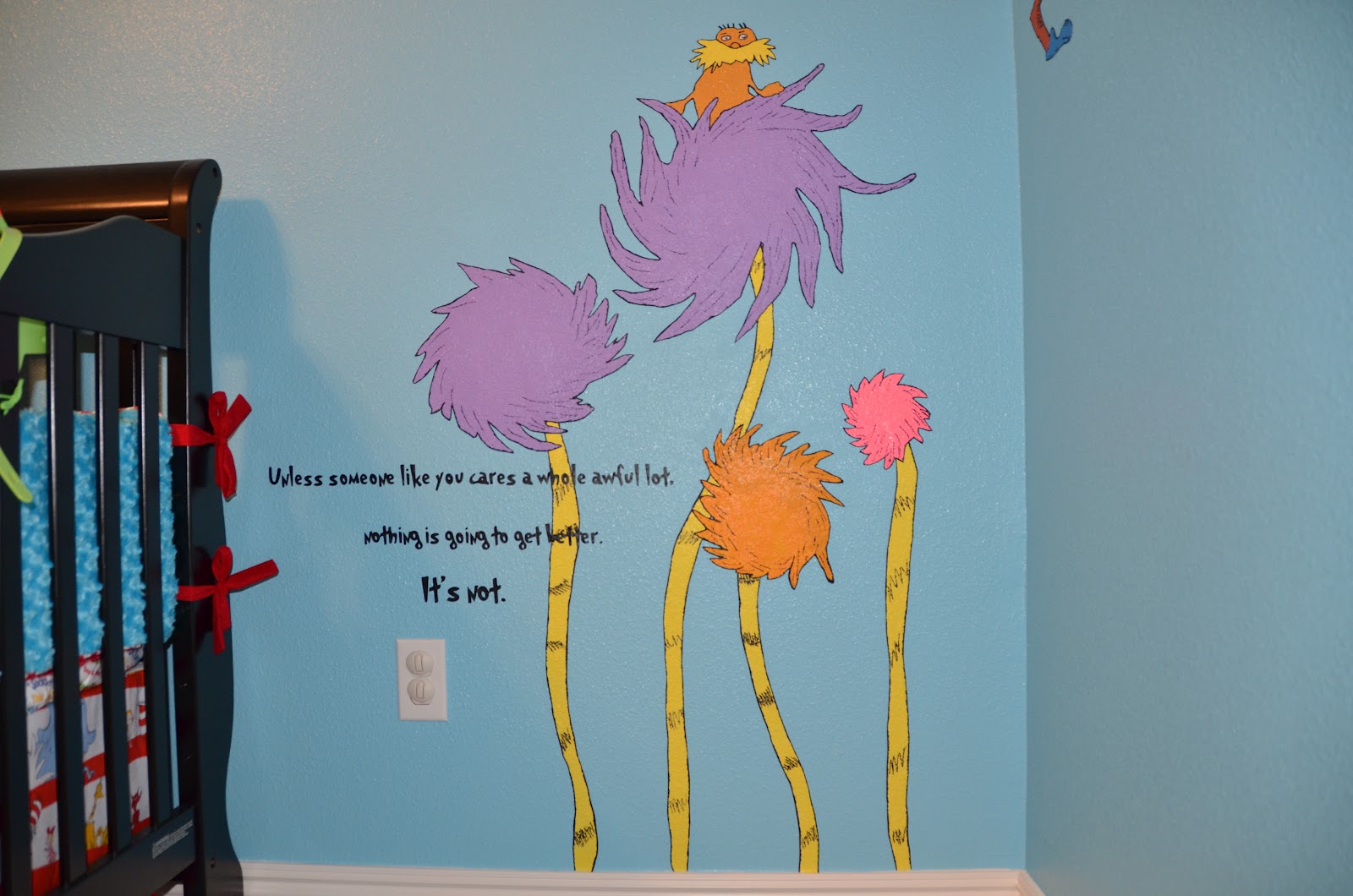I made the wall murals by tracing them onto paint on wallpaper. I bought an EZ Tracer at Hobby Lobby ($19.99 w/ online coupon). I got the paint on wallpaper (has the orange peel texture to it) for $16.99 for 50 yards (I think, it was a huge roll) and the border paste for $5.99 at Lowe's. The acrylic paint was less than $1.00 on sale each at Hobby Lobby and the acrylic spray sealer came from Walmart for a few bucks. Overall, I spent less than $60 to do all the characters plus I have a ton of paper left over. You can find people selling these for close to $40 a piece for the good sized ones on ETSY. I thought I'd save the money and do them myself!
